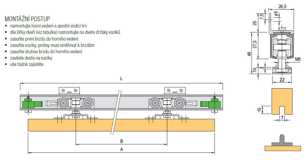 Készleten csillapítós verzió is - 393308 (Beltéri tolóajtó vasalat 1399/330 40kg 2x csillapító)