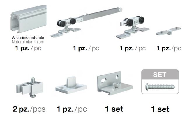Vasalat szett egy ajtószárnyra (910 - 1100mm) + 2db csillapító + felső vezetés - 1900mm.