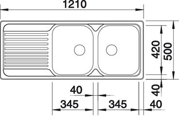 Blanco 511925 KSMS-hagyományos nemesacél mosogató-02 TIPO 8 S természetes fényű nemesacél excenter nélkül, dupla mosogató 3 1" lecsepegtetővel