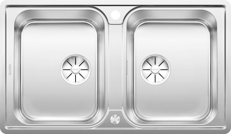 BLANCO 525331 Beépített/sík mosogató CLASSIMO 8-IF csiszolt rozsdamentes acél, InFino excenteres PushControl vezérléssel dupla mosogató 2x3 1/2" lefolyó nélkül, tartozékok nélkül