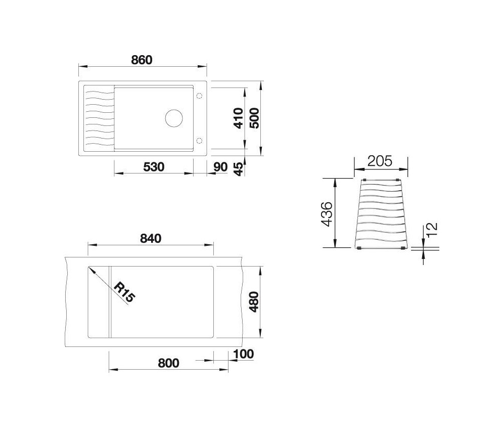 BLANCO 524879 Mosogató ELON XL 8 S fekete SILGRANIT® PuraDur®InFino k lefolyó nélkül rozsdamentes acél 3 1" kétoldalas mosogató lefolyótalppal 3 1" kétoldalas mosogató lefolyótalppal