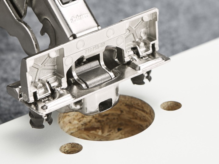 Ráütődő klipspánt beépített Blumotion csillapítással (kikapcsolható), nagy ráütéshez vastag korpuszoldalak esetén – ráütés akár 20 mm, frontvastagság akár 26 mm. Nyitási szög 110°. Kényelmes ráütés- és mélységállítás a karon. Magasságállítás a szerelőtalpon. Szerszám nélküli Inserta csészerögzítés.
