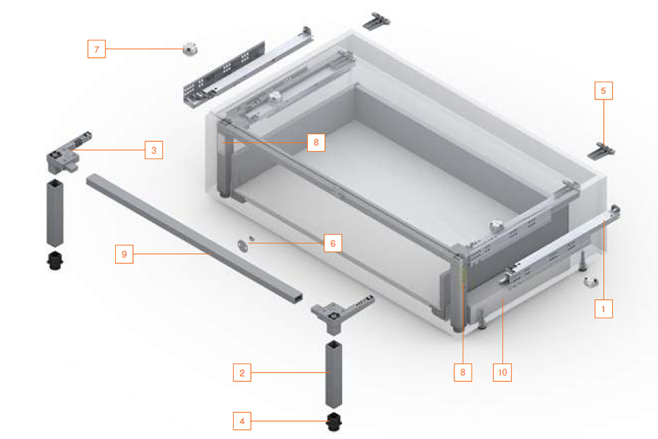 Csúszóvezető összeszereléséhez, minden Box rendszerhez és Blum vezető rendszerhez megfelelő