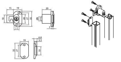 Zár keskeny alumínium ajtókerethez - kétszárnyú