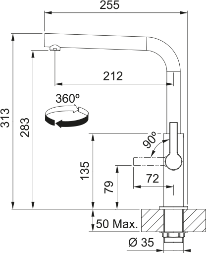 FRANKE Baterie FS 2841.901 Maris Slim bez sprchy černá matná