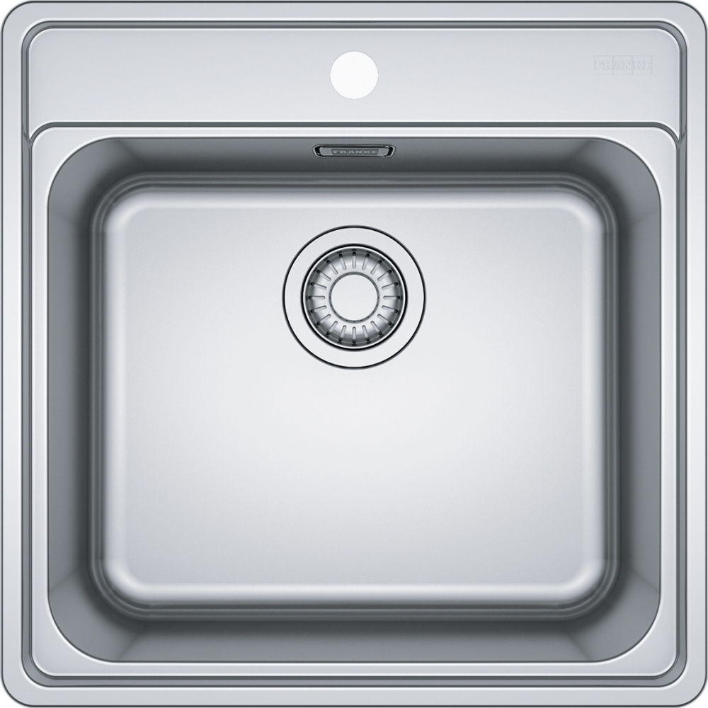 FRANKE Dřez BCX 210-51 nerez 510x510, sada ventilu + sifon, otvor pro baterii průměr 35 mm
