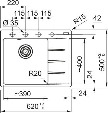 FRANKE Dřez CNG 611-62 TL/2 620x500mm šedá břidlice