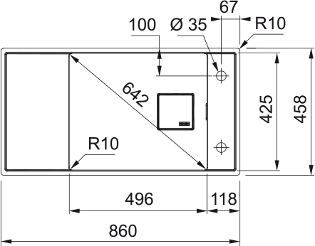 Vrták pro frézování otvoru pro baterii do granitových dřezů není součástí balení dřezu. Lze zakoupit pod kódem 346147. Slouží pouze pro vrtání předfrézovaných otvorů. Průměr 35 mm.
