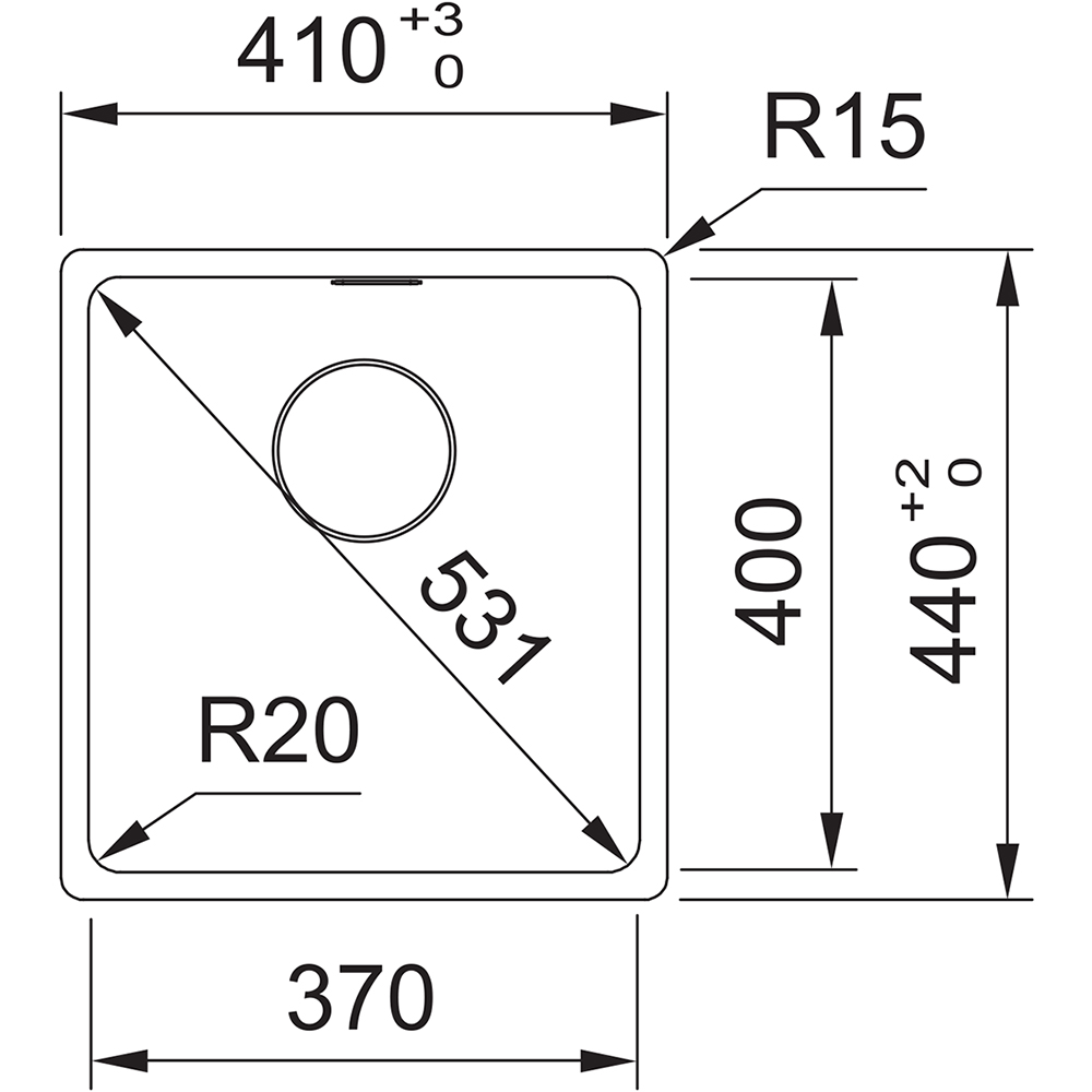 Výřez: 370 × 400 mm (Rádius 20 mm)