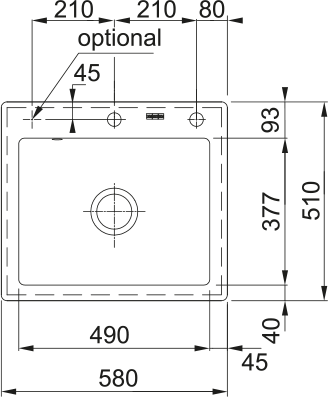 Dřez: 490 × 377 × 190 mm