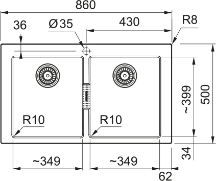 FRANKE Dřez S2D 620-86 860x500mm šedá