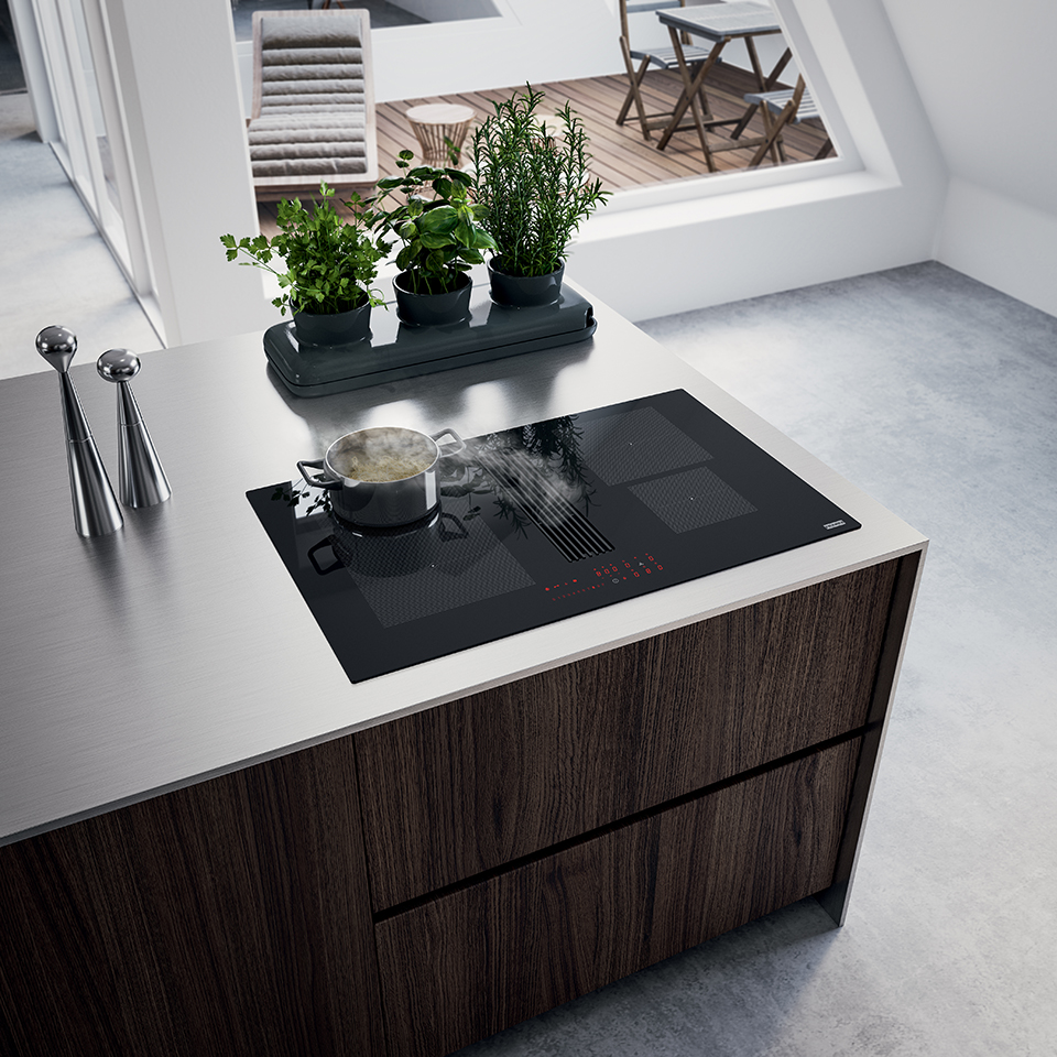 Franke indukční deska s odsavačem par FMA 8381 HI černé sklo/bílá grafika
