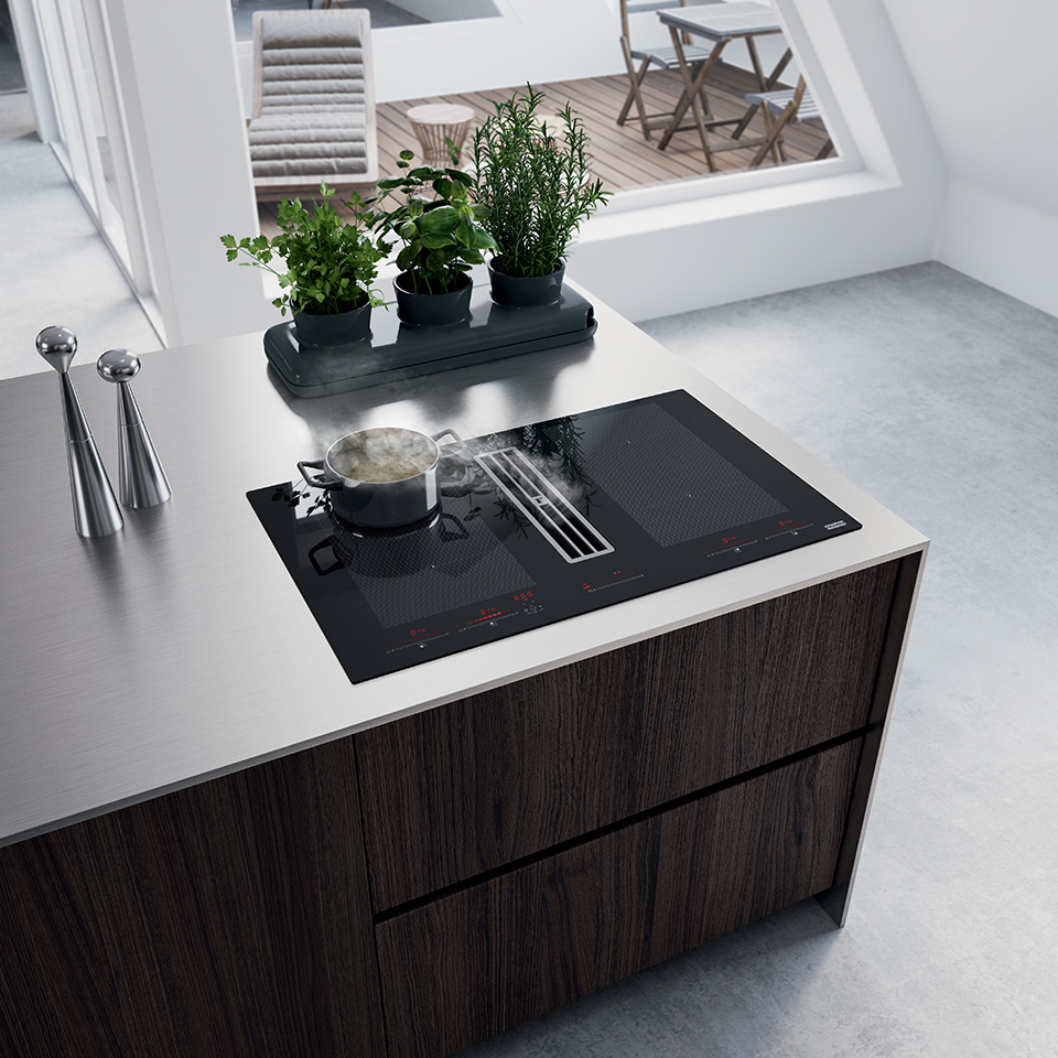 Franke indukční deska s odsavačem par FMA 8391 HI černé sklo/bílá grafika