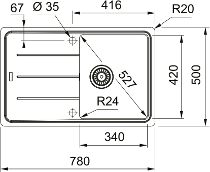 Sink: 340 x 420 x 200 mm