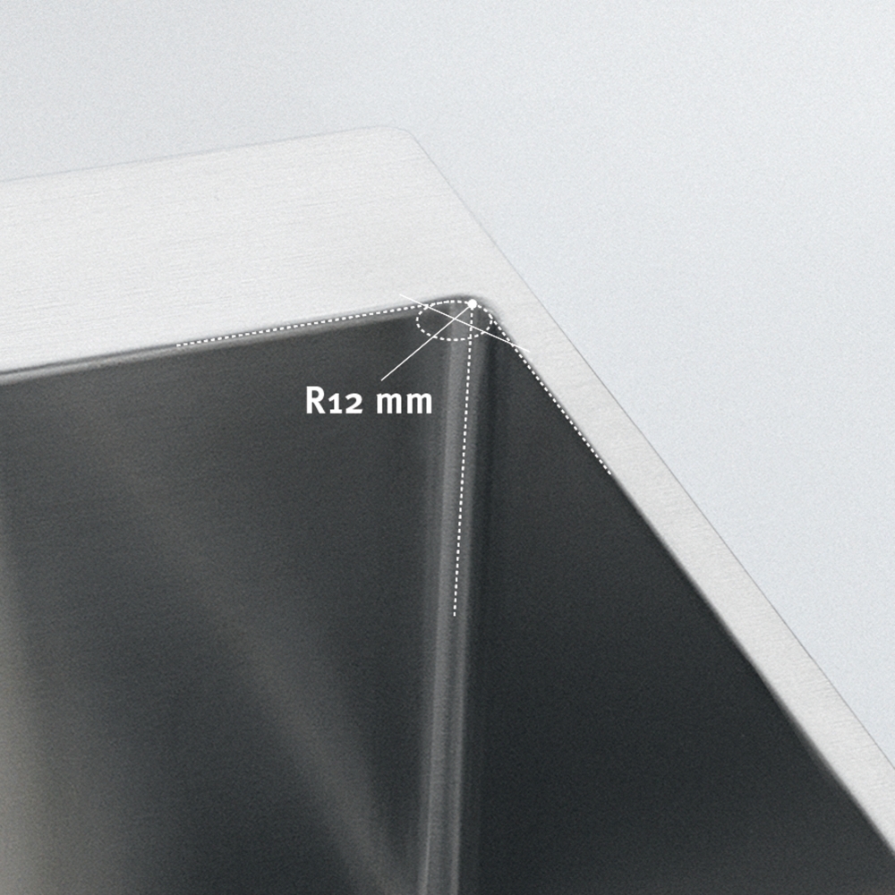 Montáž do roviny - Výřez 410 × 490 mm (Rádius 10 mm) Vyfrézování drážky po celém obvodu výřezu o hloubce 1,3 mm (432 × 512 mm, R 11 mm)