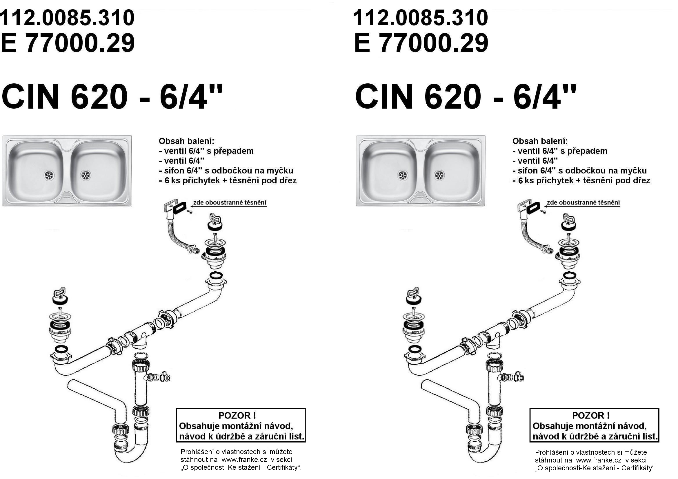 FRANKE Mosogató CIN 620 780 x 435 nyílással csaptelepekhez