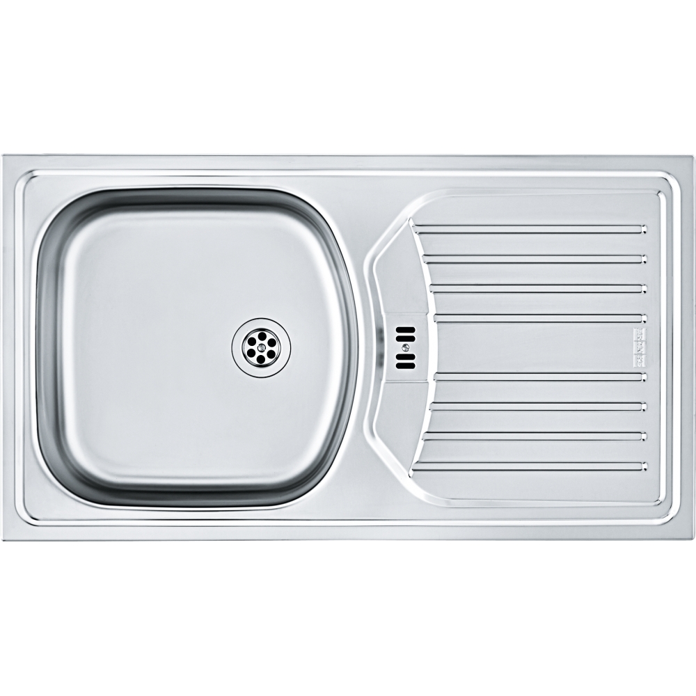 Franke Mosogató lecsepegtető felülettel. Szélesség 780mm, mélység 435mm. A mosgatónak egyszerű 6/4-es szelepe van gumi dugóval.