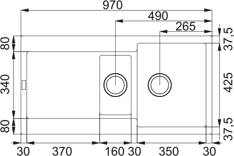 Milling drill faucet hole for granite sinks is not included in the sink package. It can be purchased under the code 346147. It is only used for drilling pre-milled holes. Diameter 35 mm.