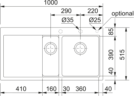 Drill for milling the faucet hole for granite sinks is not included in the sink package. It can be purchased under the code 346147. It is only used for drilling pre-milled holes. Diameter 35 mm.