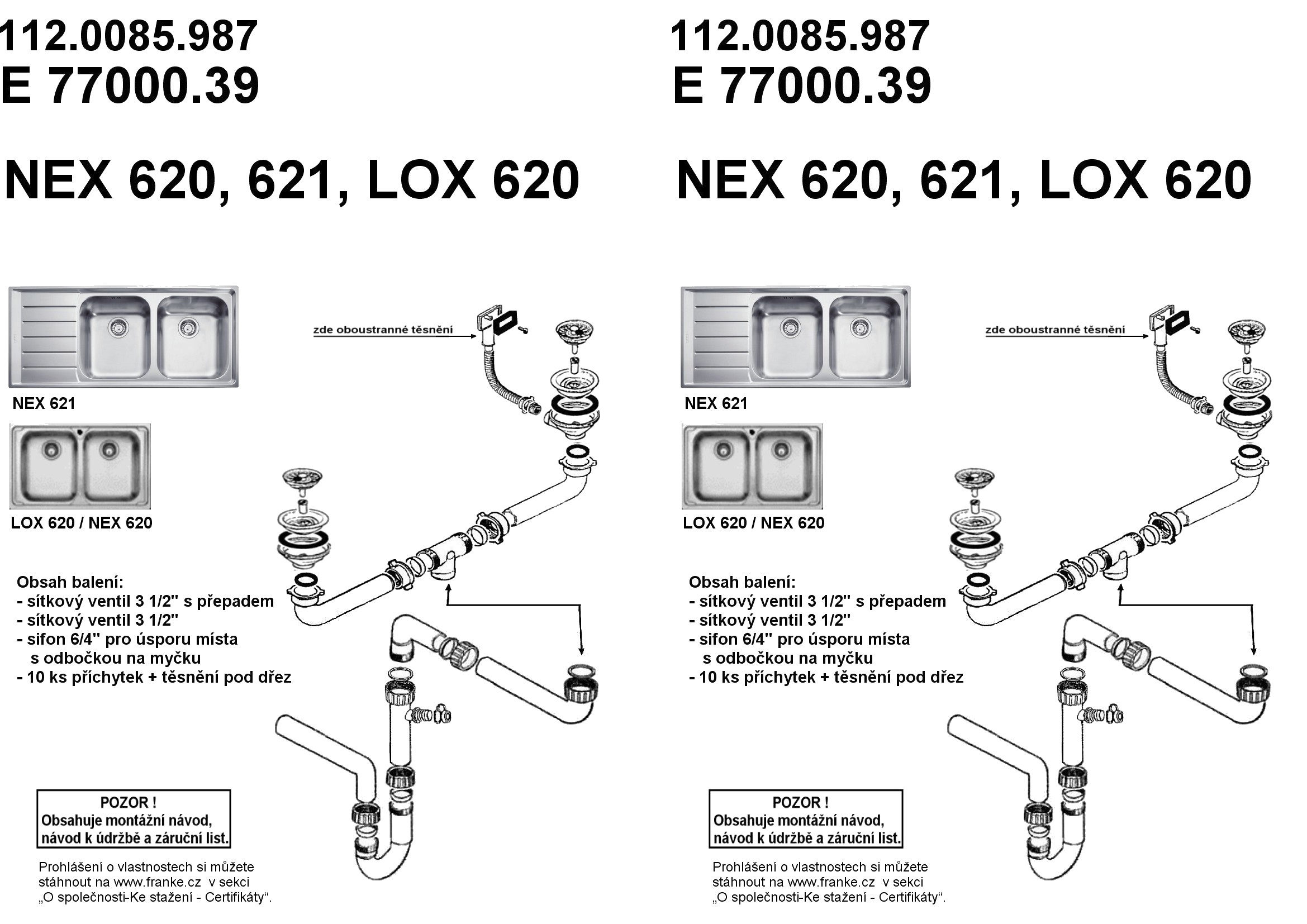 FRANKE Mosogató NEX 621/2J 1160 x 510 3 1/2