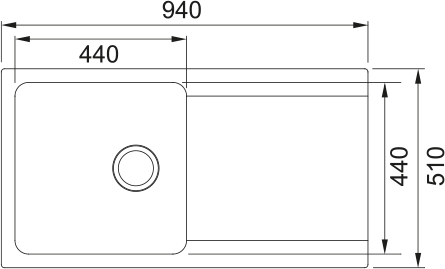Sink: 440 × 440 × 190 mm