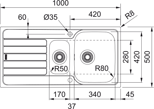 FRANKE Mosogató SKX 651 3 1/2 1000 x 500