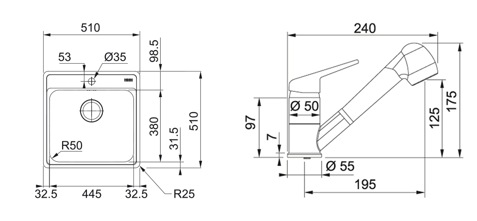 Franke szett N91 (mosogató BCX 610-51 + csaptelep FC9547.031)