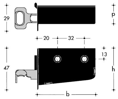 SCILM függesztő szerelvények (Olaszország) felső függesztett szekrényekhez. Szerelés a szekrény oldalán lévő csavarokkal. Terhelhetőség 70 kg/darab (140 kg/pár). A maximális terhelhetőséget befolyásolja a szerelvénynek a szekrényhez való rögzítése és az akasztópár/rúd falhoz való rögzítése.