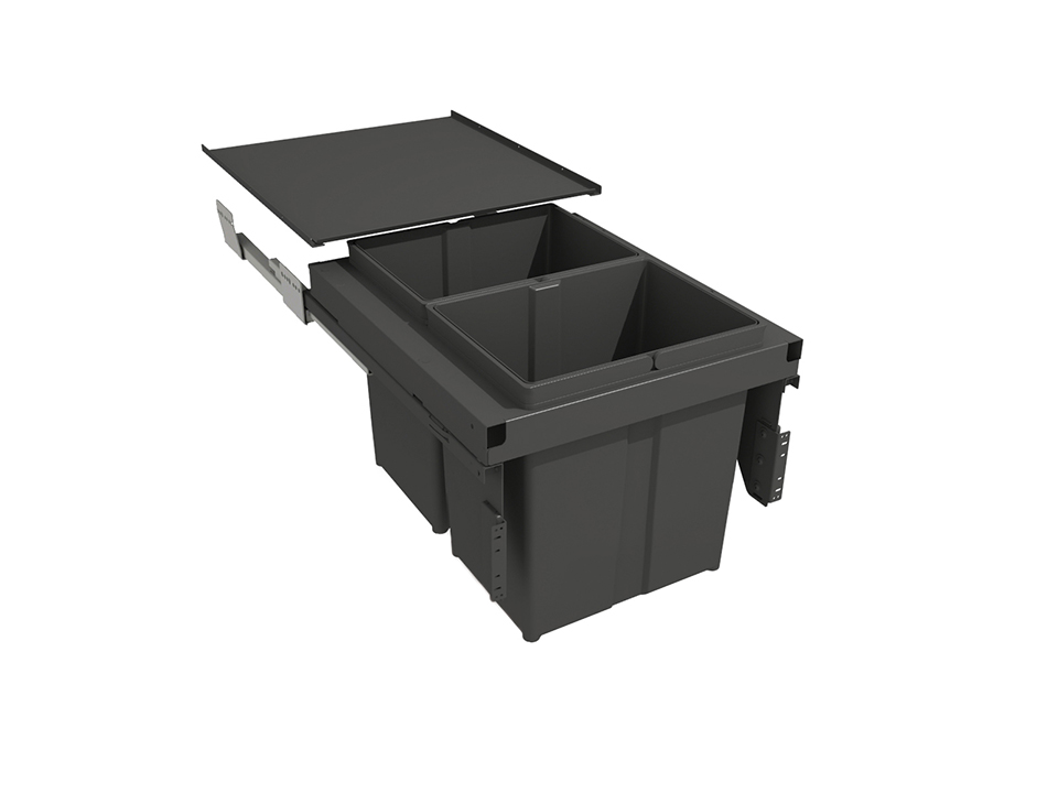 Válogató két tartállyal 2x29l. 45cm-es szekrényhez. Tartalmaz egy fémpolcot a válogató felett, amely fedélként szolgál. A készlet tartalmaz sineket csillapítással Grass . Orion szürke színű.
