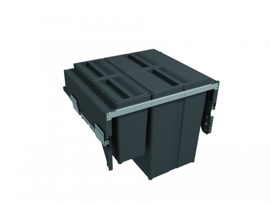A szortírozó teljes fiókokkal együtt a szekrénybe 600 mm, műanyag kosarak fedéllel, magassága 463 mm, 2x kosár 29L + 2x kosár 8l. A válogató mélysége 458 mm, a korpusz szükséges belső mélysége min. 462 mm.
