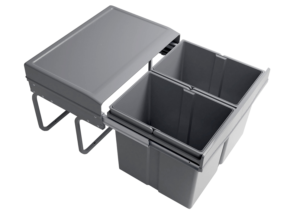 Ručně výsuvný sorter se dvěmi nádobami 2 x 15l pro šířku skříňky 500 mm.