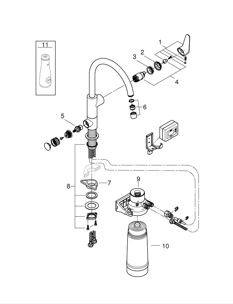 GROHE kék egykaros mosogató csaptelep szűrő funkcióval egy lyukas rögzítés