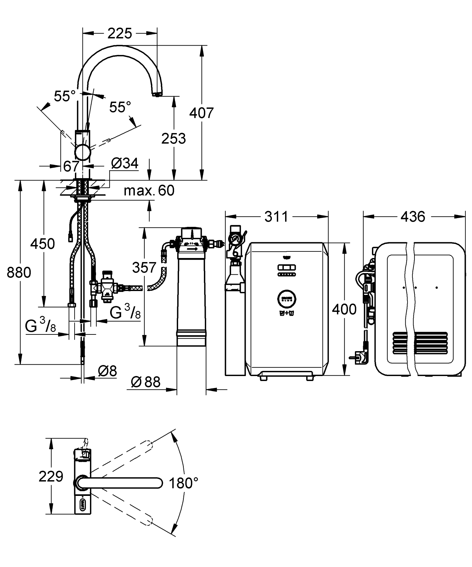 GROHE Blue 600 l szűrő, szűrőfej rugalmas beállítással
