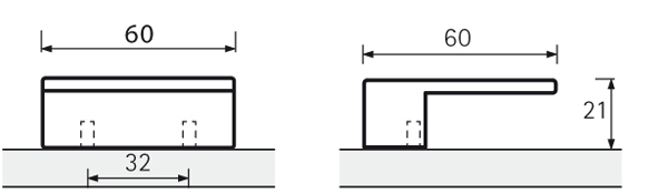 Fogantyú VENUSIA hossz 60 mm, furattávolság 32 mm. Felület nemesacél imitáció.
