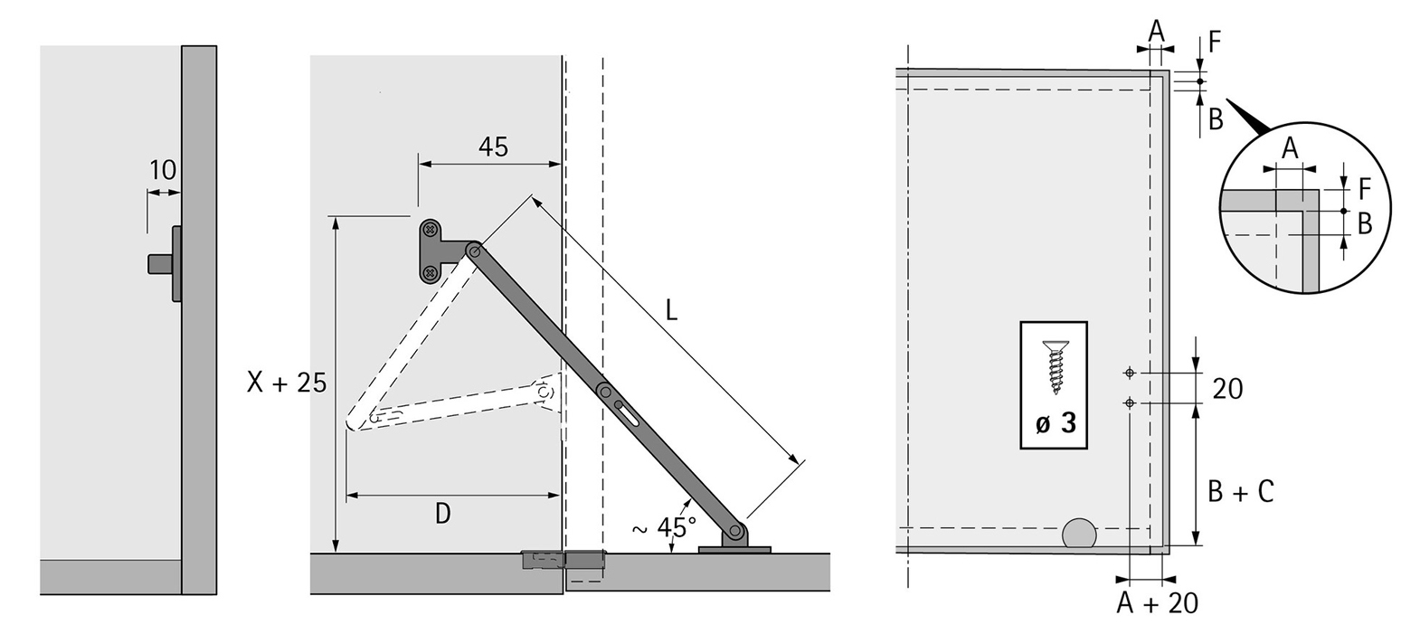 HETTICH 13233 lenyíló vasalat KH 200 mm