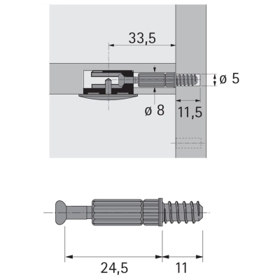 Tipli becsavarozásra, eurócsavarra menet, fúrás átmérő 5mm, felerősítő méret 24, 5 mm, cinkezett acél/kék műanyag