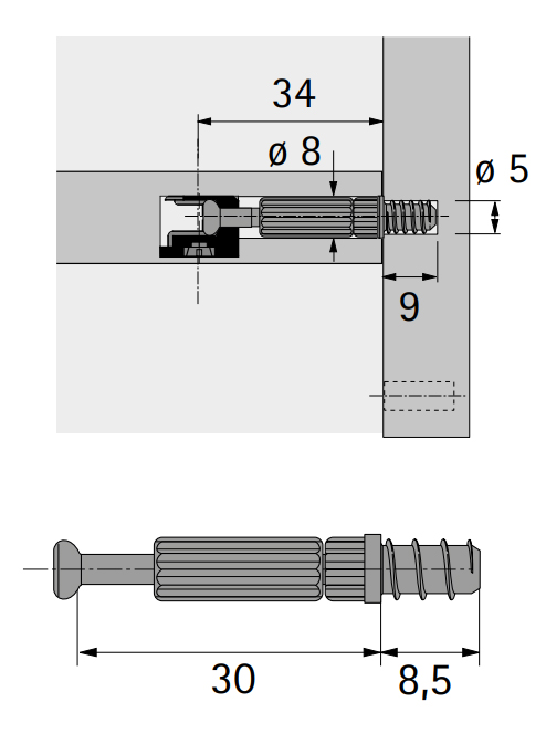 Euromenet fúrásátmérő 5 mm, becsavarozási méret30 mm, Acél cinkezett, fekete műanyag.