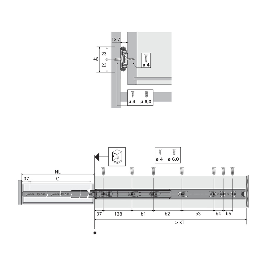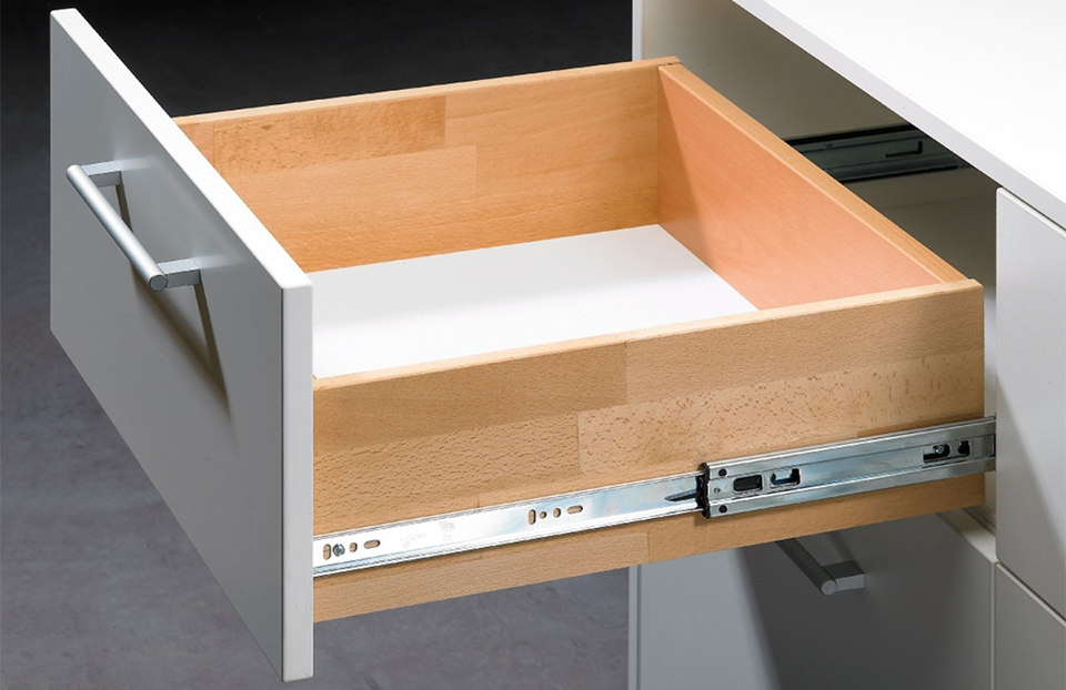 Teljes kihúzású golyós fióksín fa fiókokra, szerelési szélesség 12, 7 mm, Teherbírás 45 kg. Ütközővel és biztosítással a nem kívánt kihúzás ellen. Kar segítségével a sínt szét lehet választani és a fiókot egyszerűen kivenni a korpuszból. A fiókokra, amelyeknek az alja a horonyban van, félhoronyban vagy tompán. Acél. Fekete szín.