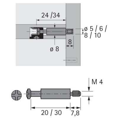 Menet M4 x 7, 8 mm, méret 30 mm, acél.