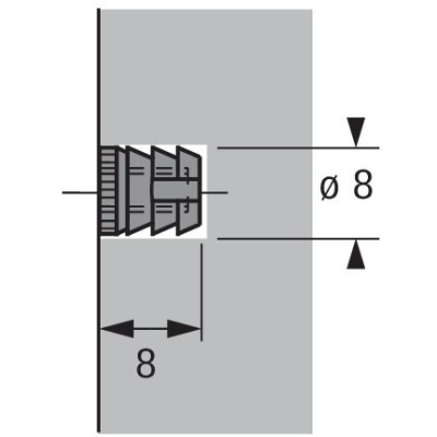 Menet M4, a fúrás átmérője 8 mm, a fúrás mélysége 8 mm.