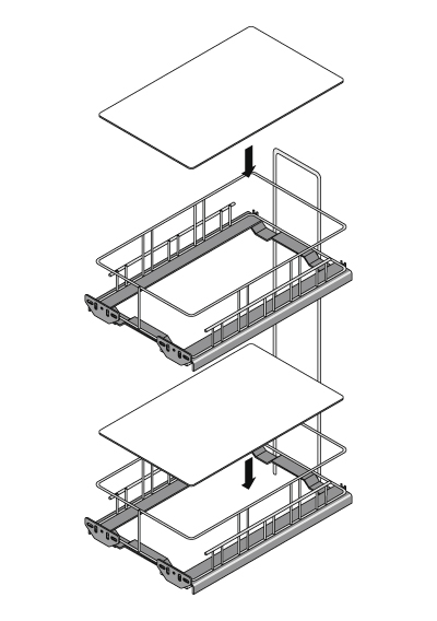 Behelyezhető polc Cargo IQ plus 300 front kihúzású sínhez (sz. 159009). Áttetsző műanyag.