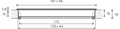 Fogantyú TOUCH-IN hossz 181 mm, furattávolság 172 mm. Besüllyesztésre az anyagba. Felület nemesacél imitáció.