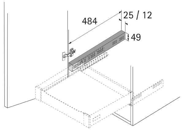 Pro Quadro a rolničkové výsuvy. Použití na zásuvky umístěné za dveřmi. Distanční lišta překoná přesah dveří do světlosti korpusu. Bílý plast.