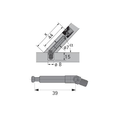 Rastex 15. Menet M6 x 7 mm, a fúrás átmérője 8 mm, Felfogó méret 39 mm, krómozott acél.