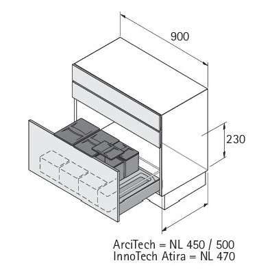 HETTICH 9132350 szemeteskosár Bin.it Flex 900 mm 12+