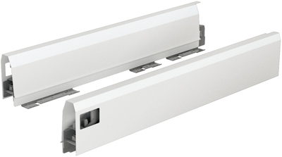 Rugalmas szett oldalfal magassághoz: 94 mm tartalmaz: oldalfal balos és jobbos, 2 frontrögzítő beüthető tiplivel, 2 takarósapka Hettich logóval, kötőelemek. Felület: fehér.