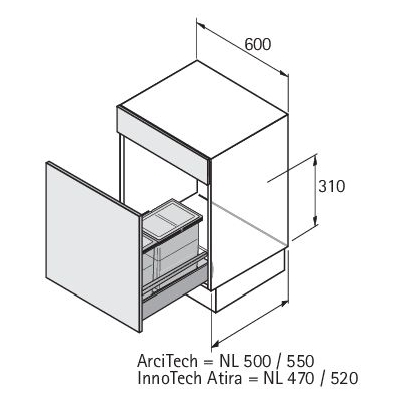 HETTICH 9208752 Bin.it Smart 600 mm, 470 520 mm