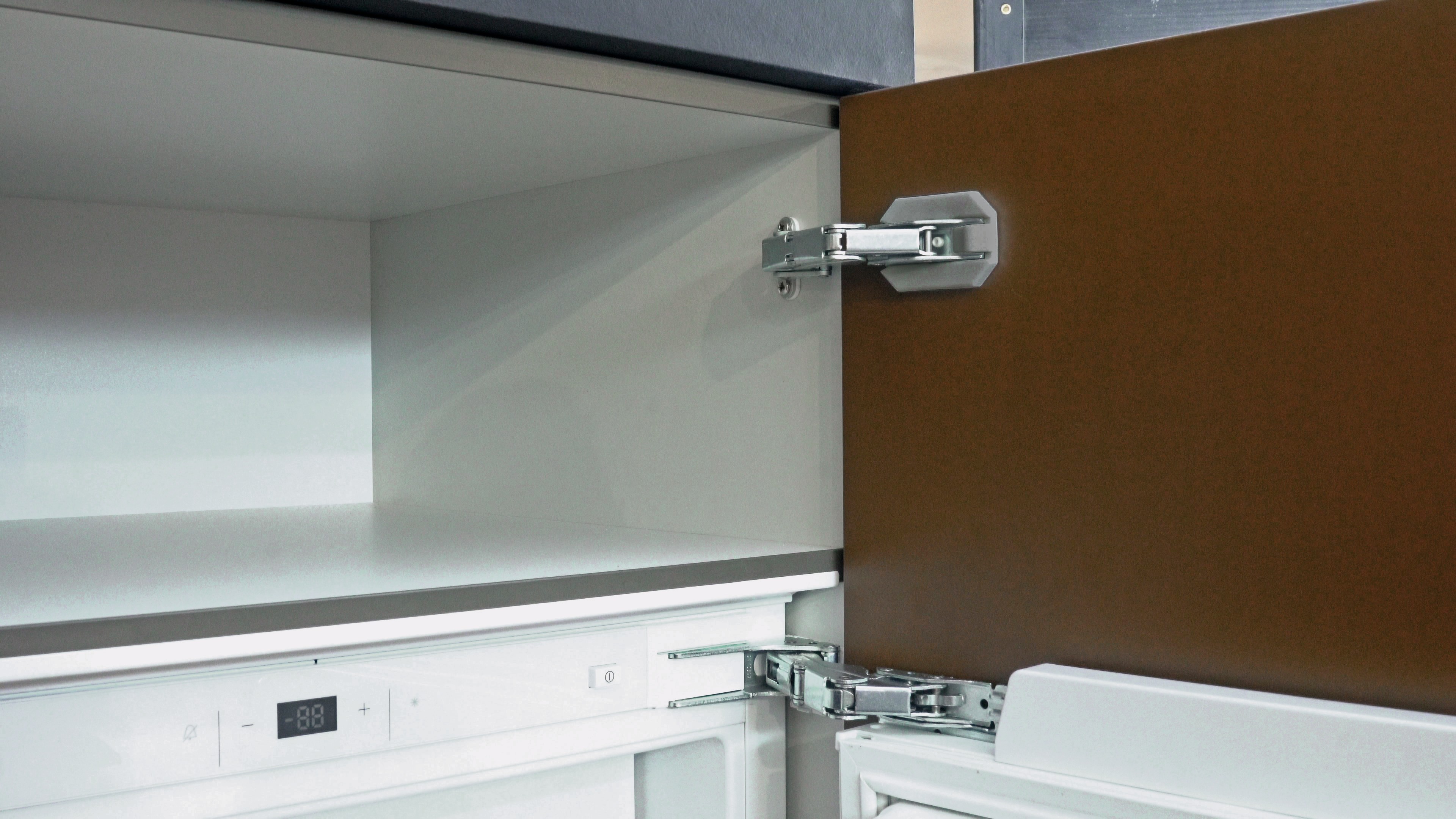Az ET 582 zsanérok (104454) beépített hűtőszekrényekhez, forgócsapos zsanérokkal és vezetőcsúszkával, nem kombinálhatók a Hettich OEM zsanérokkal szerelt beépített hűtőszekrényekhez való kiegészítő zsanérokkal: Kamat vezető zsanér (387533) / Evisys teherbíró zsanér (538127/538128).