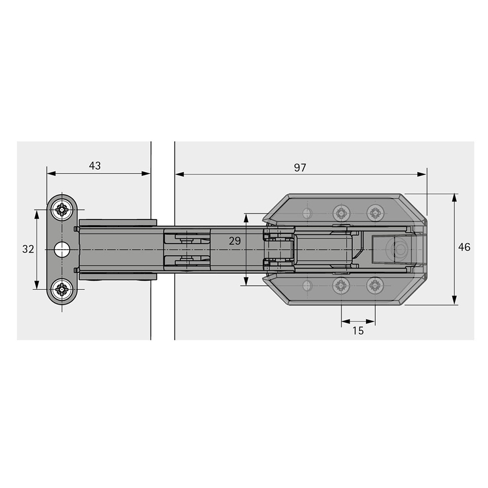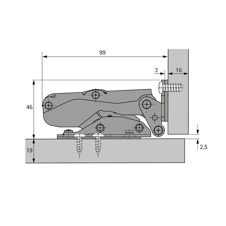 Kiegészítő pánt a csavarozáshoz az ajtó kinyúló részére a beépített hűtőszekrény felett. Minőség az EN 15570 szabvány 3. szintje szerint. Korpuszhoz 19 vagy 16 mm oldalvastagsággal. Beépítési mélység 41,5 mm. Anyag: acél, nikkelezett. A készlet tartalmaz: pántot, sablont, távtartó a szekrény oldalához. 16 mm, távtartók, takaró fehér, rögzítőcsavarok, szerelési útmutató.
