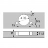 Novisys 8848i csíptethető gyorskioldóval és beépített Silent System (SiSy) csillapítással. 105°-os nyitási szög, fúrási kép a jelölés szerint (TH 52x5,5mm vagy TB 45x9,5mm). Ajtóvastagság 14-24 mm, tál mélysége 11,8 mm. Beépített betöltésbeállítás +/- 2 mm, beépített mélységbeállítás +2,8/-1,2 mm. Magasságállítás a rögzítő alátéttel. Nikkelezett acél.